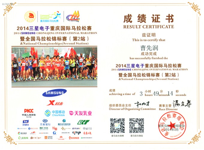 華夏恒泰的總經(jīng)理曹先潤(rùn)參加了此次賽事,并以較大鵬馬拉松提高10多分鐘的成績(jī)(3小時(shí)49分14秒)完成了全程。曹總以超越自我的心態(tài)享受著跑步,享受著比賽,每次都有目標(biāo),每次都有提高。